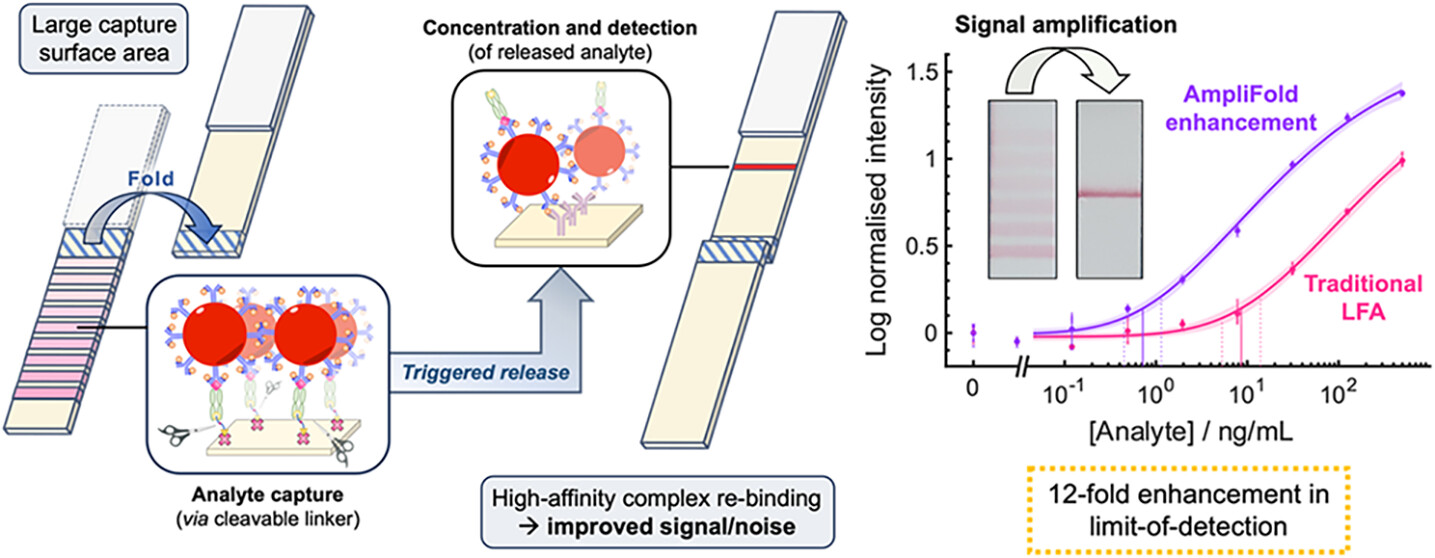 AbstractNovel methods for introducing chemical and biological functionality to the surface of gold nanoparticles serve to increase the utility of this class of nanomaterials across a range of applications. To date, methods for functionalising gold surfaces have relied upon uncontrollable non-specific adsorption, bespoke chemical linkers, or non-generalisable protein–protein interactions. Herein we report a versatile method for introducing functionality to gold nanoparticles by exploiting the strong interaction between chemically functionalised bovine serum albumin (f-BSA) and citrate-capped gold nanoparticles (AuNPs). We establish the generalisability of the method by introducing a variety of functionalities to gold nanoparticles using cheap, commercially available chemical linkers. The utility of this approach is further demonstrated through the conjugation of the monoclonal antibody Ontruzant to f-BSA–AuNPs using inverse electron-demand Diels–Alder (iEDDA) click chemistry, a hitherto unexplored chemistry for AuNP–IgG conjugation. Finally, we show that the AuNP–Ontruzant particles generated via f-BSA–AuNPs have a greater affinity for their target in a lateral flow format when compared to conventional physisorption, highlighting the potential of this technology for producing sensitive diagnostic tests.